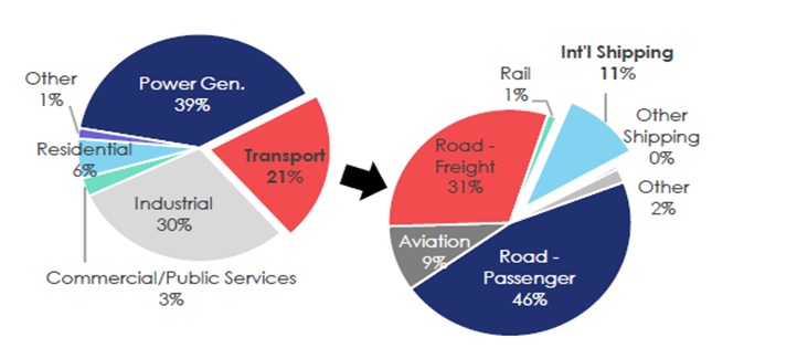 2009-2019 yılları arasında karayollarındaki araç sayısının 1 milyardan 1.6 milyara yükselmesi karayolu yolcu taşımacılığındaki CO2 emisyonunu %46 ile birinci sıraya taşırken, karayolu yük taşımacılığı yüzde 31 ile ikinci sırayı, denizyolu taşımacılığı ise %11 ile üçüncü sırayı almaktadır.