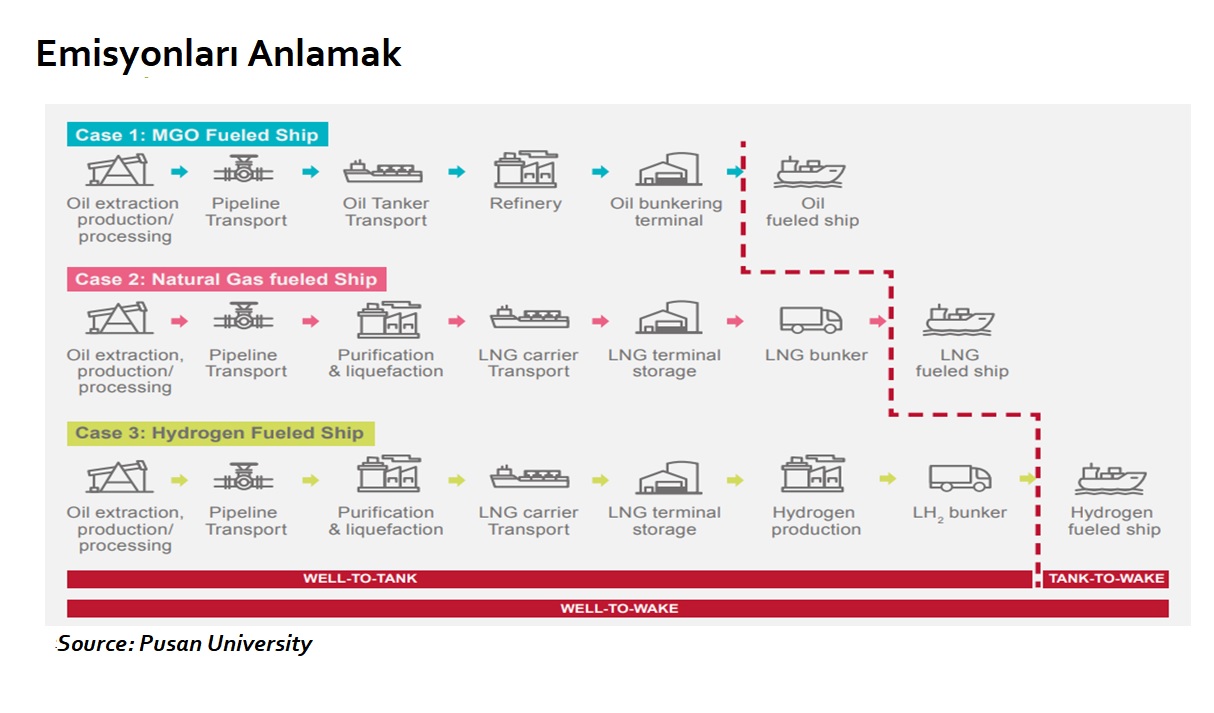 Günümüzde yakıt emisyonları tanktan pervaneye (Tank to Wake) ölçülüyor. Yakıtın pervaneye gelene kadar tüm üretim süreçlerinin hesaba katıldığı ‘’ well to propeller ‘’ ölçüm metoduna kademeli olarak geçilmektedir. Bu durumda doğal gaz ve kömürden elde edilen amonyak ve metanolün denizde kullanılması imkânsız hale gelecektir.