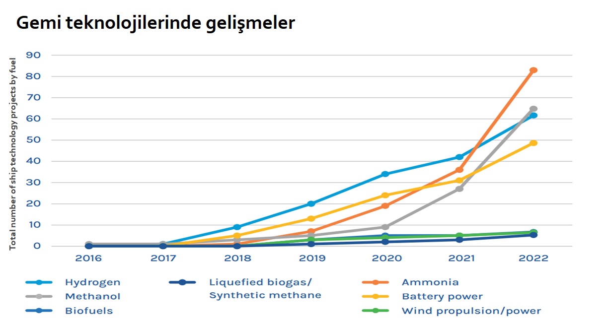 Elbette bu süreçte enerji verimliliği, alternatif yakıtlar, tahrik sistemlerinin (propulsion) iyileştirilmesi de hedefe ulaşmakta önemli rol üstlenecektir.