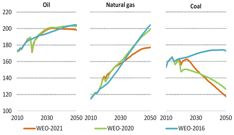 Son beş yılda Uluslararası Enerji Ajansı (IEA) fosil yakıtların kullanımı konusunda giderek kötümser hale geldi. Bunun nedeni yenilenebilir enerji kaynaklarına yapılan yatırımların artmasıdır.