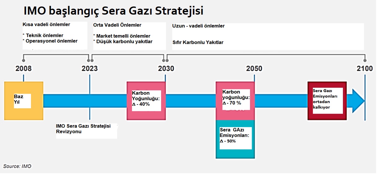 Dünya Denizcilik Örgütü 2008 senesini esas alarak 2023, 2030, 2050 ve 2100 stratejileri (planları) geliştirmiş, kısa orta ve uzun vadeli izlenecek yol ve karbon yoğunluğu hedefleri oluşturmuştur.