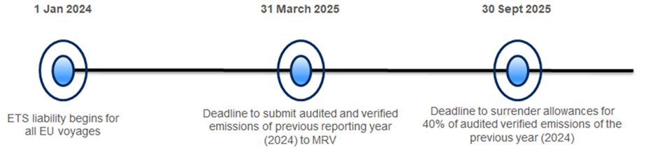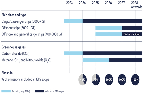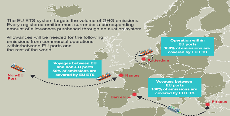 EU ETS Emission Trading Schme (European Union Emission Trading Scheme) has been expanded as of 1 Jan 2024 to cover the Maritime sector. In short, EU aims is to cut the GHG (green house gases) emissions by 55% compared to 1990 by 2030 to comply with the EU Fit For 55 package.