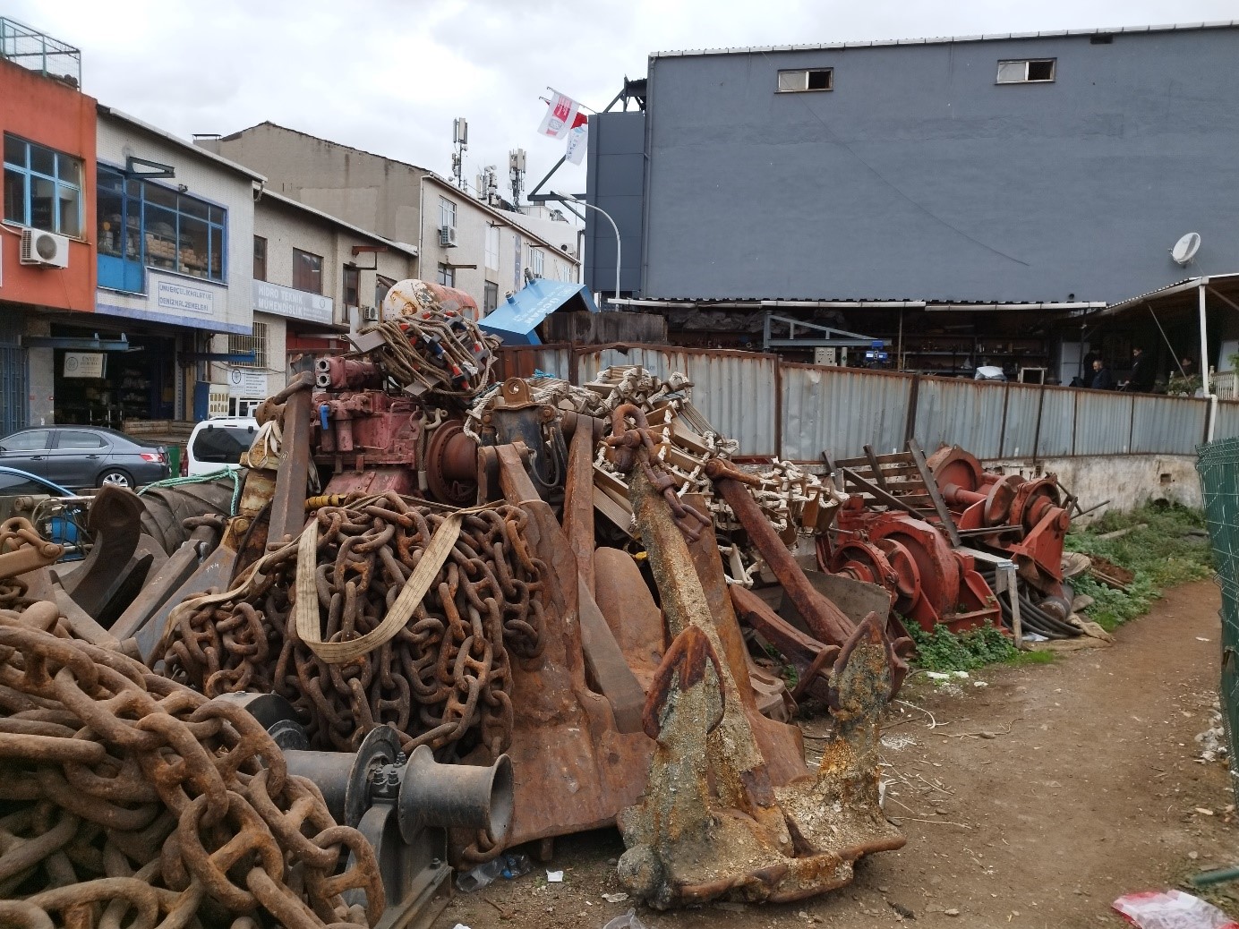 The photos below were taken at Tuzla Ship Industry and display the materials that are awaiting the new ship. These used materials, usually obtained from scrapped ships, are called "reused materials". Prices are usually in kilo/tonne and may vary depending on the quality of the material, the supply-demand balance, and sometimes even the buyer's clothing and vehicle.Materials in better condition and projected to have higher profit yields are better protected, whilst materials in worse condition are left exposed to the sun and rain.In addition, if these materials do not exactly match the ships purchased, the sellers can provide technical support or direct them to the places that provide technical support. This technique is known as "adjustment" and it is carried out by a master, such as a welder or a turner. So the "reused material" is seemed to "fit" on the new ship.