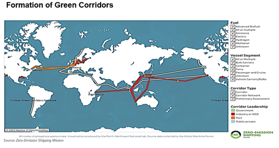 As we begin to transition to alternative fuels, they are expected to be challenging in terms of fuel availability, acceptability and so on. As a result, major shareholders have teamed up to establish green corridors along a few chosen trade routes. Alternative fuel will be available in these green corridors, thereby encouraging ship owners to deploy ships powered by alternative fuel.